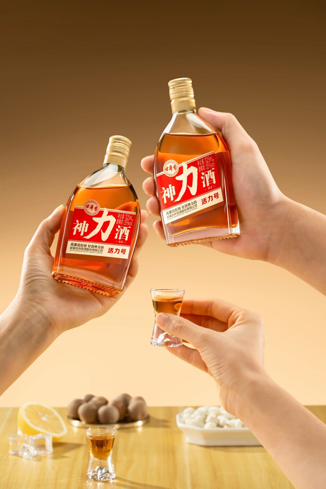 在饮用场景与体验上,古井贡·神力酒更具创新性与适配性:既可直接品鉴,也可兑柠檬水、加冰块DIY饮用,覆盖家庭小酌、亲朋聚会、健康轻饮、户外休闲等多元场景,打破养生酒的场景局限。产品设计兼顾颜值与实用性,包装以红色为主色调,传递积极、有活力的品牌调性,小容量便携易饮,让消费者轻松实现“小瓶轻饮,随时养生”。